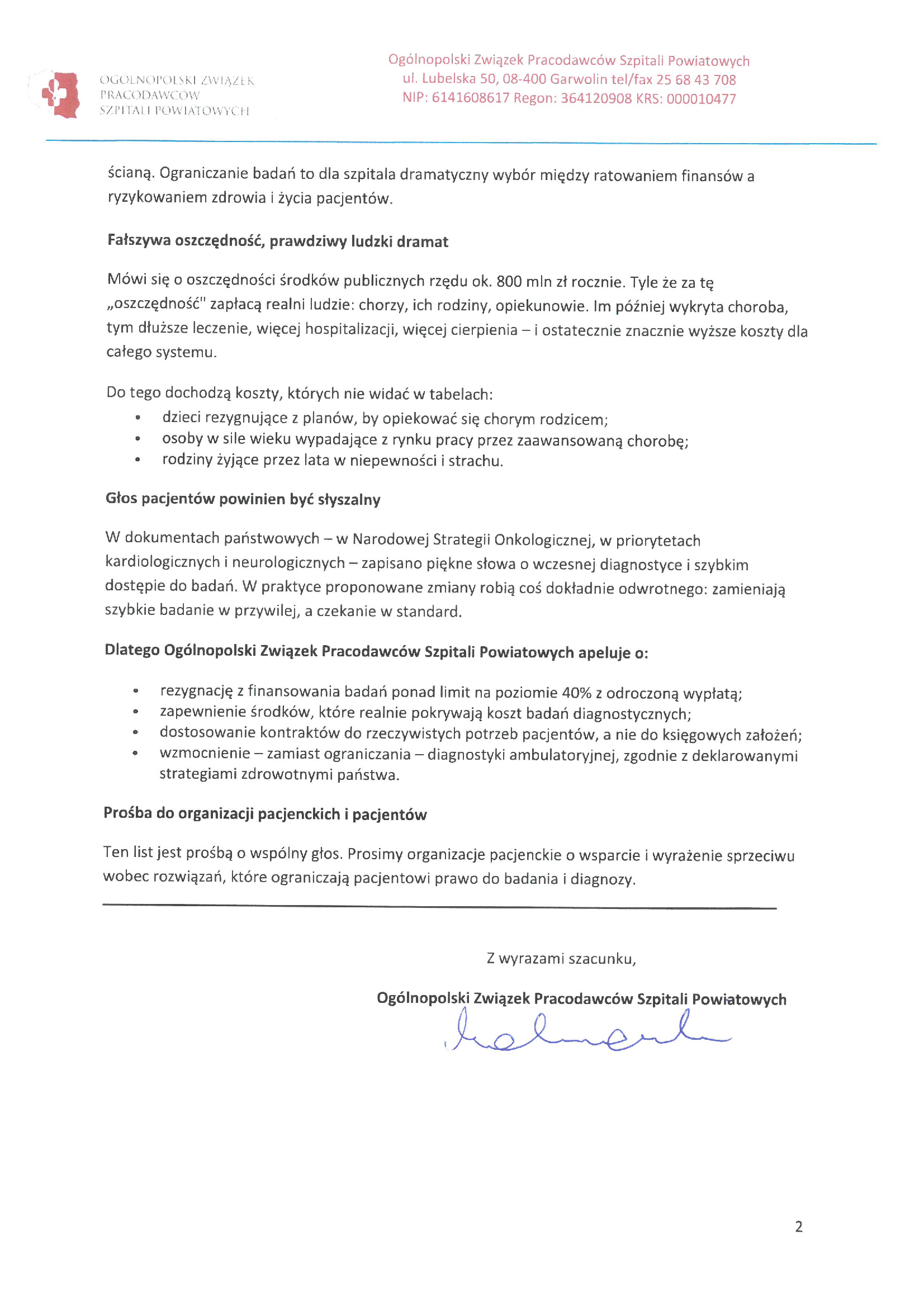 List otwarty do organizacji pacjenckich i pacjentów w sprawie projektu zarządzenia Prezesa NFZ